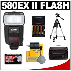 Canon 580EX II Speedlite Flash + 4 Batteries & Charger + Tripod + Case for Canon EOS 7D, 5D, 60D, 50D, Rebel T3, T3i, T2i, T1i, XS Digital SLR Cameras Review Special Price